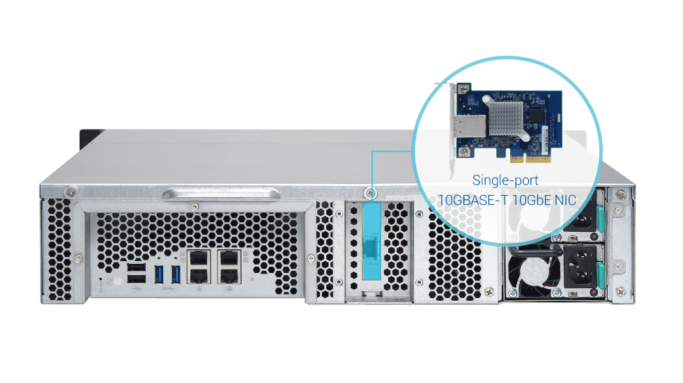 High-performance quad-core 10GbE NAS with redundant power supplies