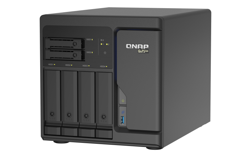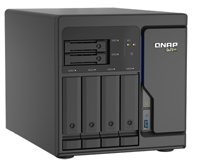 Intel® Xeon® D desktop QuTS hero NAS with four 2.5GbE ports, designed for real-time SnapSync data backup and virtual machine applications
