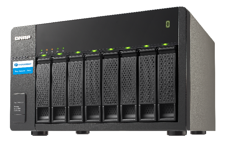 When expanding data storage capacity, deploying multiple servers can lead to complexity in management and dramatically increased costs. QNAP TX-800P expansion enclosure provides a flexible expansion alternative designed with easy setup in mind for scaling up Thunderbolt NAS storage space via high-speed Thunderbolt 2 (20Gbps) cables. The TX-800P provides an additional 8 hard drives providing up to 64 TB* expanded capacity for the Thunderbolt NAS, making it ideal for data backup, 4K digital media collection and video surveillance storage with blazing-fast data transmission performance.